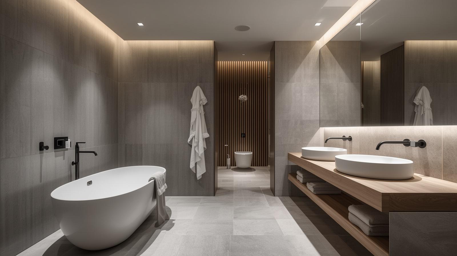 Complete bathroom tile installation including showers, floors, walls, and vanities.